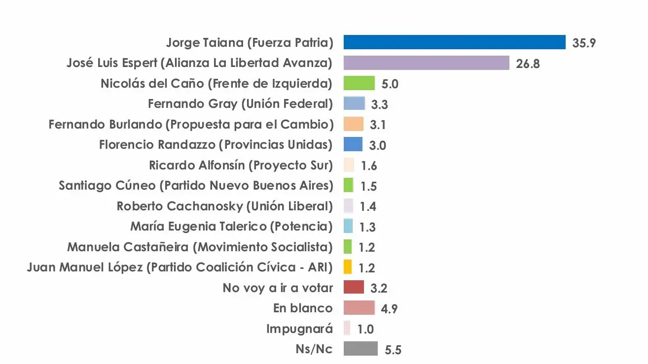No se ve claramente una tercera opción que pudiera captar ese voto desencantado con Espert. La candidatura de Florencio Randazzo por Provincias Unidas y de la ex macrista María Eugenia Talerico de la nueva agrupación Potencia podrían verse beneficiadas, pero al momento no se ve reflejado. Otro posible efecto sería la desmovilización de esos electores, con una más baja participación bonaerense, algo muy difícil de medir en encuestas. Pero si se repite el resultado de septiembre, con más de un millón de votos de diferencia, entonces habrá que recalcular la cuenta nacional porque se ve difícil encontrar en qué provincias LLA podría recuperar tanta distancia. Para más, aunque Espert sea el candidato bonaerense, es de imaginar que el escándalo también influirá en la cosecha del oficialismo en otros distritos en el marco de una pelea nacional muy polarizada. Uno, es la ciudad de Buenos Aires, donde la coalición LLA-Pro tenía esperanzas de capturar el 50% de los votos. Hoy, ninguna encuesta está dando eso y la aparición de la ministra y candidata a senadora Patricia Bullrich tomando rápidamente distancia de Espert fue una muestra clara de ese escenario cada vez más complicado para el oficialismo.
