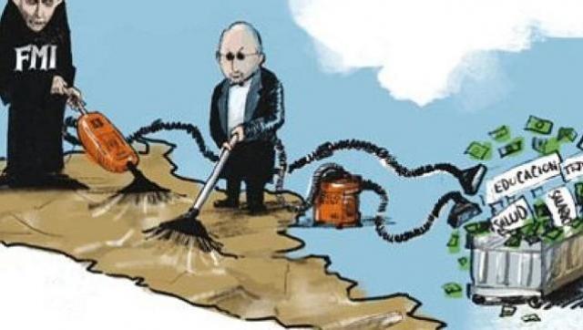 • Cada asistencia obliga a firmar políticas de ajuste, hace saltar la deuda externa y terminar en default —ver Columbia Law Review —