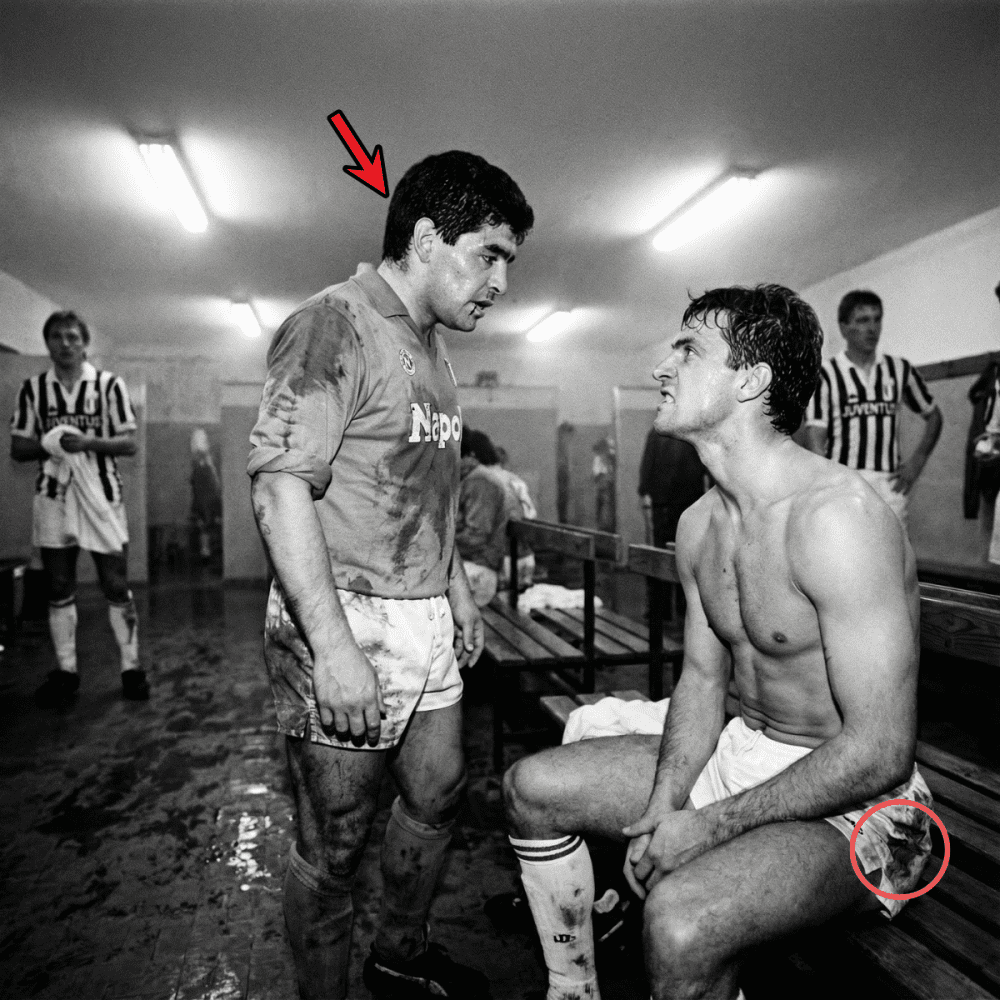 Diego Maradona parado en la puerta del vestuario de Juventus. Solo. Nadie se mueve, nadie habla, nadie respira.